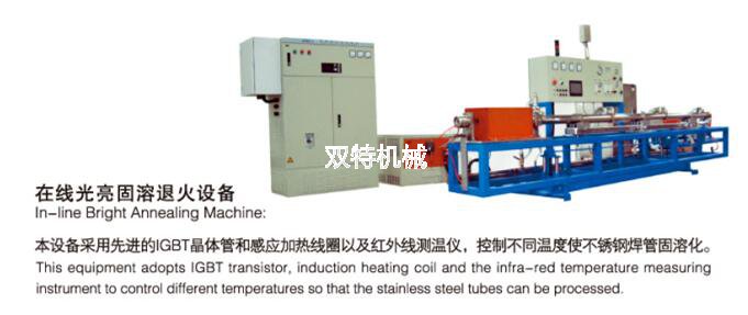 Suitable for heating stainless steel Tig and laser welding line to 1050 ℃ online followed by hydrogen protection for special equipment which quickly cools to room temperature which must be installed between sizing and straightening procedures. Features: non-repetition of hydrogen gas flow is very small only several litres per minute hydrogen.